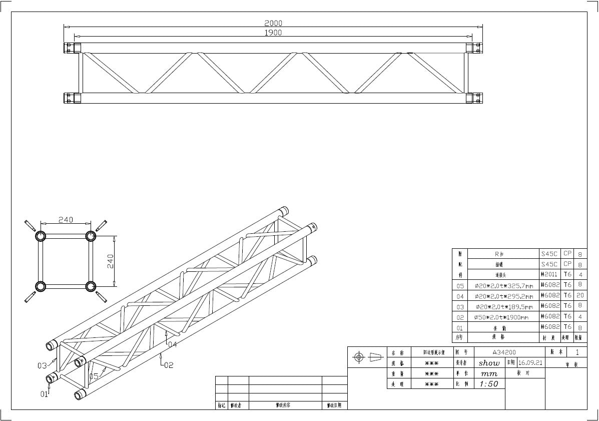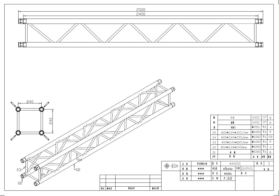 - 50*2mm Main Tubes, 25*2mm Braces, 6082 Aluminium