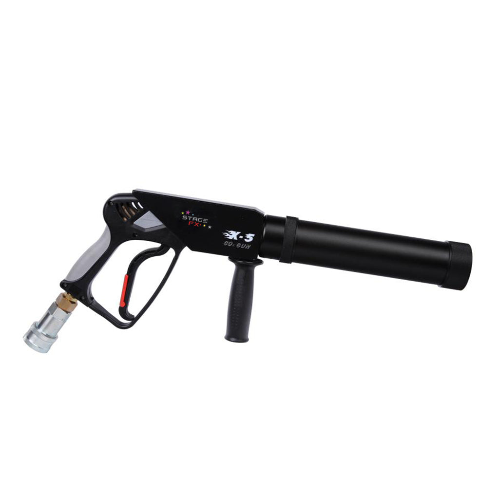 Our X5 Handheld CO2 Gun produces thick white atmospheric blasts via high pressure liquid carbon dioxide, making your show more enjoyable. It is a safe design concept with excellent workmanship. The X4 CO2 Gun's barrel is made from aluminium, not only rust-proof and better quality, but also light weight.
